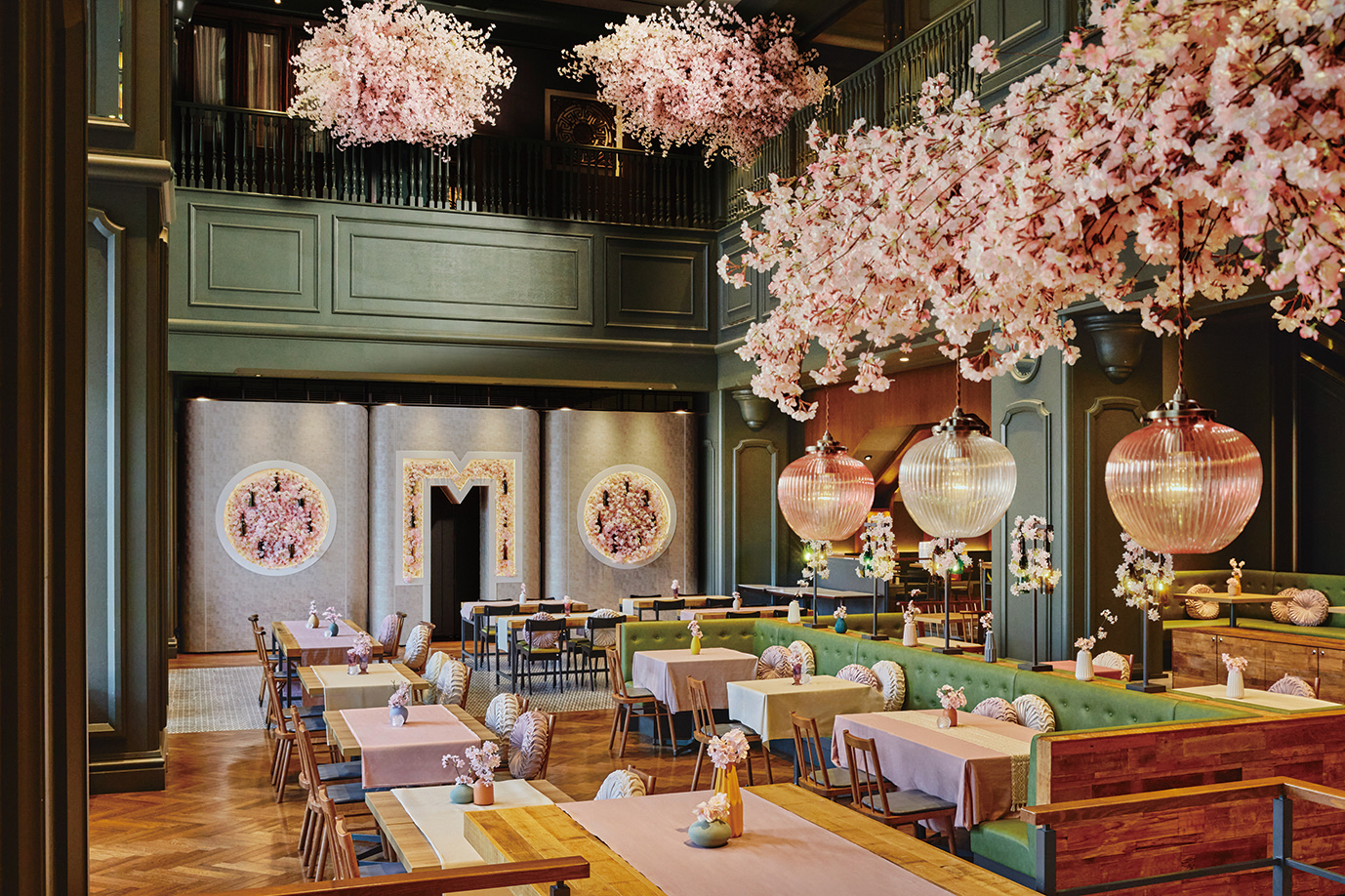 旭川を楽しみ尽くす「街ナカ」ホテル「OMO7旭川 by 星野リゾート」。この春、「桜香るアフタヌーンティー」を期間限定で開催。1階にある「OMOカフェ&バル」全体を本物さながらのエゾヤマザクラの装飾で埋め尽くす。より一層お花見を楽しめるよう、苺のマカロンや餡パンナコッタなど、春らしいメニューを用意。